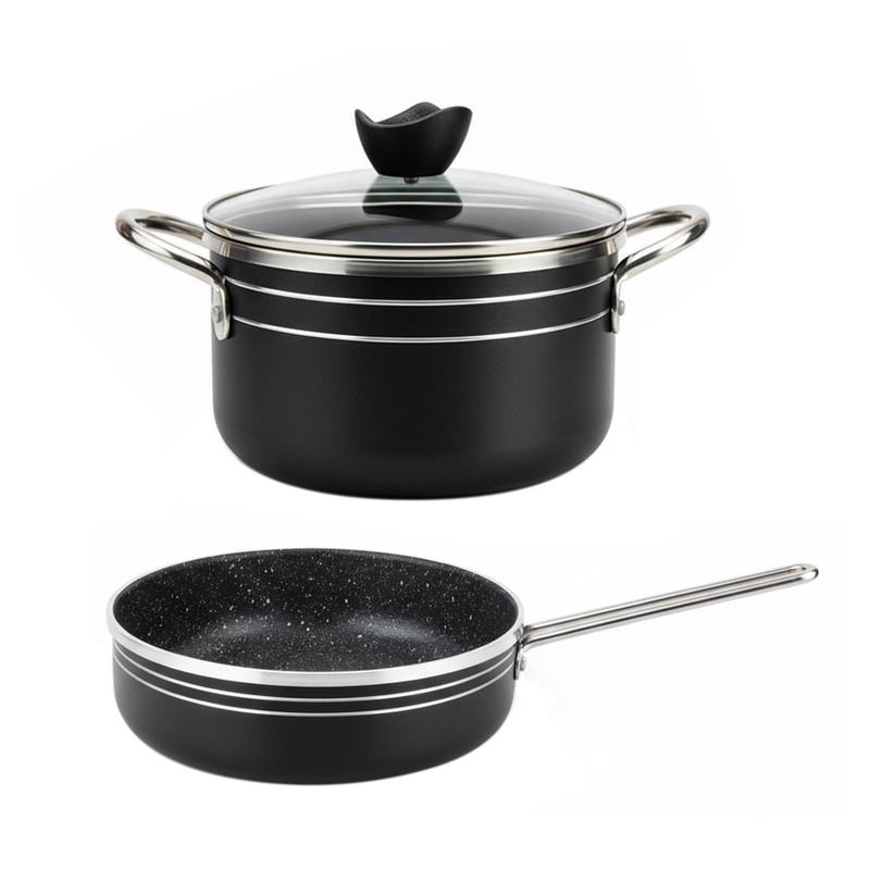 سرویس قابلمه و تابه گرانیت 4 پارچه ظرف سازان اسدیان مدل ماربل