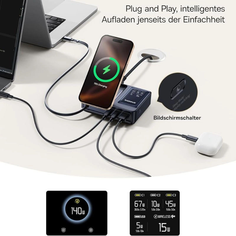 شارژر رومیزی 140 وات پنج پورت بیسوس مدل Nomos Qi2 140W