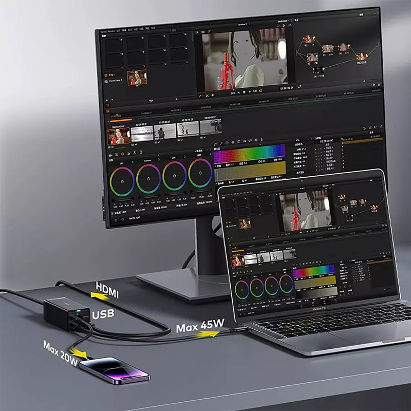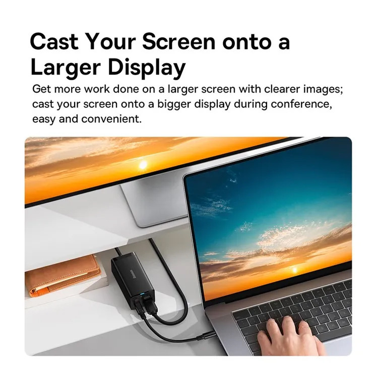اگر با مشکل کمبود یا نبود درگاههای موردنیازتان روبهرو هستید، اگر میخواهید یک آداپتور قدرتمند چندپورت را جایگزین چند آداپتور تکپورت ضعیفتر کنید، اگر به مبدلی برای اتصال دو مانیتور بههم از طریق درگاههای Type-C و HDMI نیاز دارید، باید بهسراغ شارژر و آداپتور CCGP110001 بیسوس بروید: محصولی مجهز به نسل پنجم فناوری GaN، سوپر فستشارژ و دارای توانایی انتقال تصاویر و صداها با کیفیت 4K مناسب برای اتصال مک بوک و آیپد و همچنین سایر لپ تاپ ها و تبلت هایی که از این فناوری انتقال تصویر پشتیبانی میکنند شما میتوانید با استفاده از این دستگاه در عین حال که دستگاه خود را شارژ میکنید انتقال اطلاعات انجام دهید و همچنین مانیتور دوم را به دستگاه خود از طریق پورت Type-C متصل کنید.