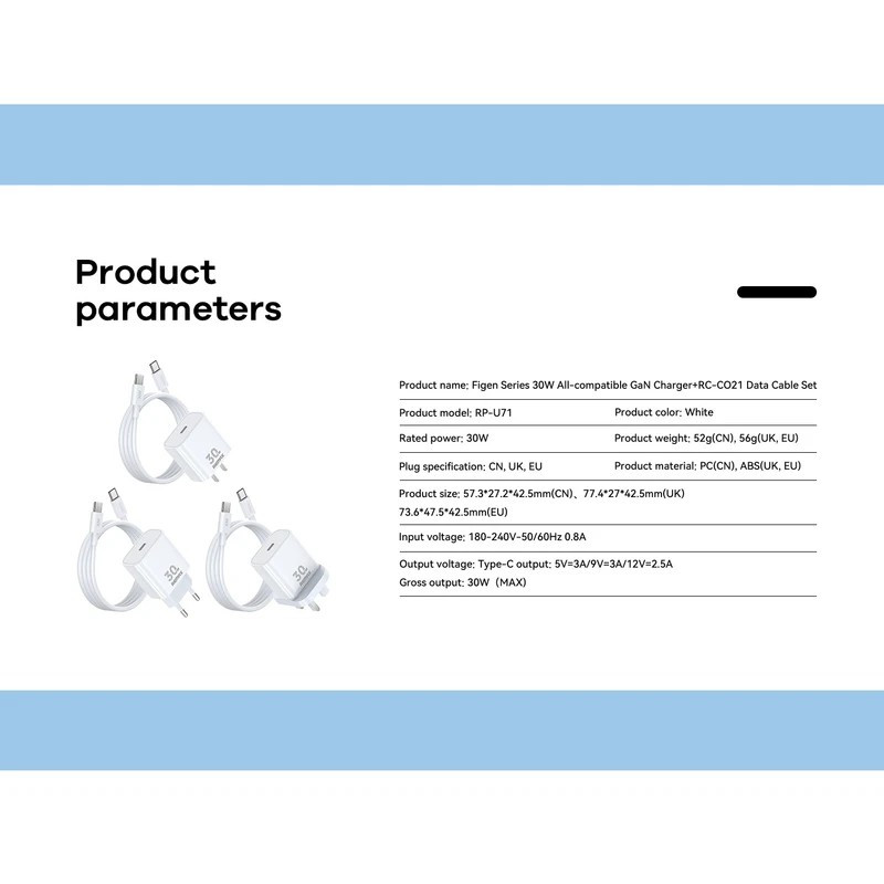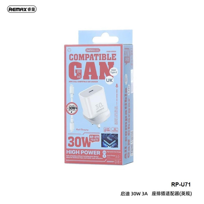 شارژر دیواری 30 وات فست شارژ ریمکس مدل All-compatible GaN-RP-U71 3Pin به همراه کابل شارژر RC-CO21 سری Figen جدیدترین محصول کمپانی بزرگ ریمکس است اولین چیزی که کاربران شارژر سریع استاندارد Remax RP-U71 30W QC و PD را به خود جلب می کنداندازه جمع و جور آن است، فضا را اشغال نمی کند وبا وزن فوق العاده سبک(فقط 38 گرم) هنگام حمل به راحتی در دست است. پوسته شارژر سریع ازپلاستیک با کیفیت PC+ABS ساخته شده است.این ماده توانایی مقاومت دربرابردمای بالا، ضربه، ضربه و انفجار را دارد. ویژگی های سری Figen 30 واتی کاملاً سازگارGaN Charger + RC-CO21 Set RP-U71:Remax RP-U71 مجهز به 1 پورت خروجی از جمله نوع C است. پورت شارژ محبوب وسازگار با اکثر دستگاه های موجود دربازار است.پورت نوع C شارژ سریع استاندارد PD را ادغام می کند(سازگار با شارژ برای iPhone/ipad).همچنین پین های تخت ساخته شده از آلیاژ آلومینیوم با کیفیت بالا را برای انتقال بهتر برق، عدم مقاومت در برابر زنگ زدگی و اکسیداسیون، افزایش دوام و طول عمر یکپارچه می کند. عمر شارژر پین ها محکم قرار می گیرند و خطر شکستگی پین ها یا نداشتن منبع تغذیه را محدود می کنند.ظرفیت شارژ تا 30 وات، شما می توانید 50درصد باتری را در عرض 30 دقیقه به طور کامل شارژ کنید.کابل شارژ سریع Remax RC-C021 Type C تا Type C 100W به طول 1 متر، می توانید گوشی خودرا بدون توجه به جایی که هستیدشارژ کنید.همچنین قابلیت انتقال داده با سرعت 480mbps را داراست.یک شارژر درجه بندی شده با کیفیت باید الزامات دوام، سرعت شارژ و ویژگی های ایمنی را برای کاربران برآورده کند. شارژر Remax RP-U71 تمام 3 فاکتور ذکر شده در بالا را تضمین می کند.شارژر سریع یک تراشه هوشمند را ادغام می کندکه می تواند منبع تغذیه مناسب برای هردستگاه شارژ را شناسایی کند.این به تثبیت جریان خروجی کمک می کند واز دستگاه در برابر پدیده هایی مانندجریان بیش از حد، گرمای بیش از حدو بارگذاری بیش از حد محافظت می کند. تراشه هوشمند همچنین می تواندبه طور خودکار برق را خاموش کند و به طور موثر از فرسودگی باتری، گرم شدن بیش از حد و آتش سوزی جلوگیری کند.این محصول بهمراه یک مبدل دوشاخه 3 به 2 ارائه میشودکه هم به پریزهای ایران قابل استفاده می باشد وهم به پریزهای کشورهای خارجی.همچنین دارای استانداردROhs،ISO 900 ,CE, ISO14001 می باشد.