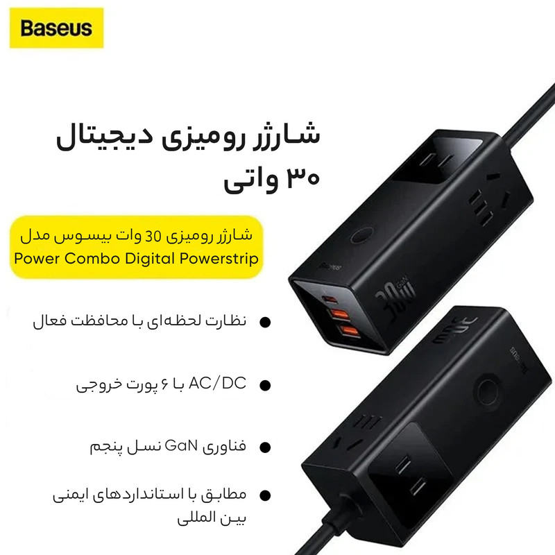 شارژر رومیزی 30 وات بیسوس مدل Power Combo Digital Powerstrip
