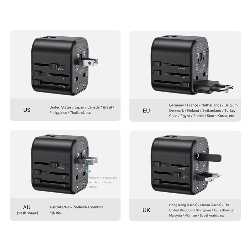 شارژر دیواری usams مدل CC173 یک شارژ فوق العاده کاربردی می باشد که برای هر نوع پریز برقی در هر کشوری میتوانید از این شارژر دیواری استفاده کنید. شارژ چند شاخه مناسب برای پریزهای کشورهای مختلف میباشد که دارای سه نوع سری میباشد و از تمامی استاندارهای US – AU – EU - UK و پریز بیش از 200 کشور پشتیبانی میکند و شما رو دیگه از هر نوع تبدیلی بینیاز کرده و به راحتی میتوانید از این شارژر استفاده کنید.
