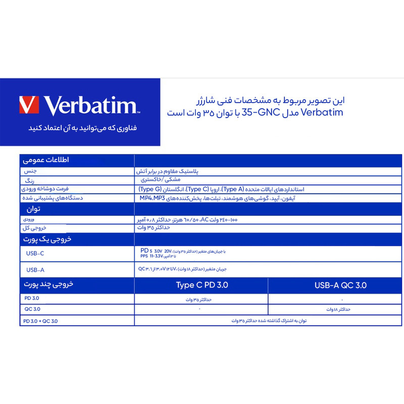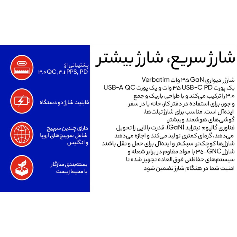 شارژر دیواری 35 وات ورباتیم مدل GaN