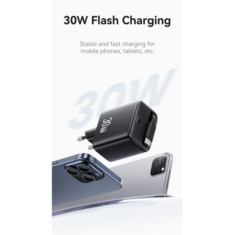 شارژر دیواری 30 وات یوسمز CC241: شارژ سریع و ایمن با فناوری GaN