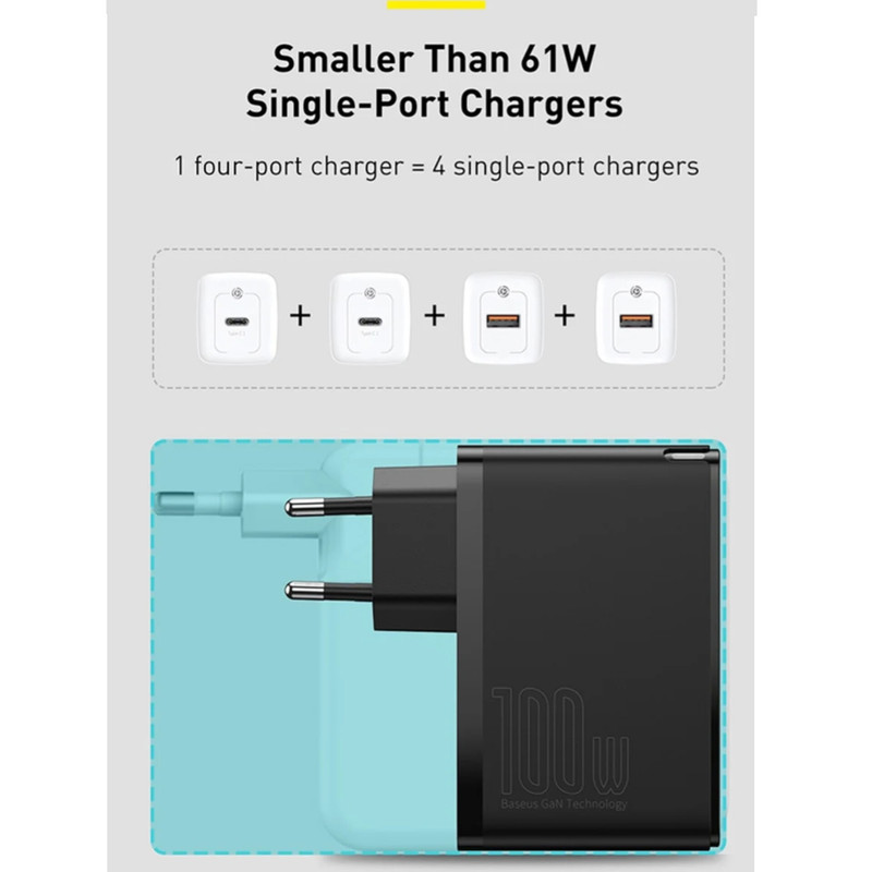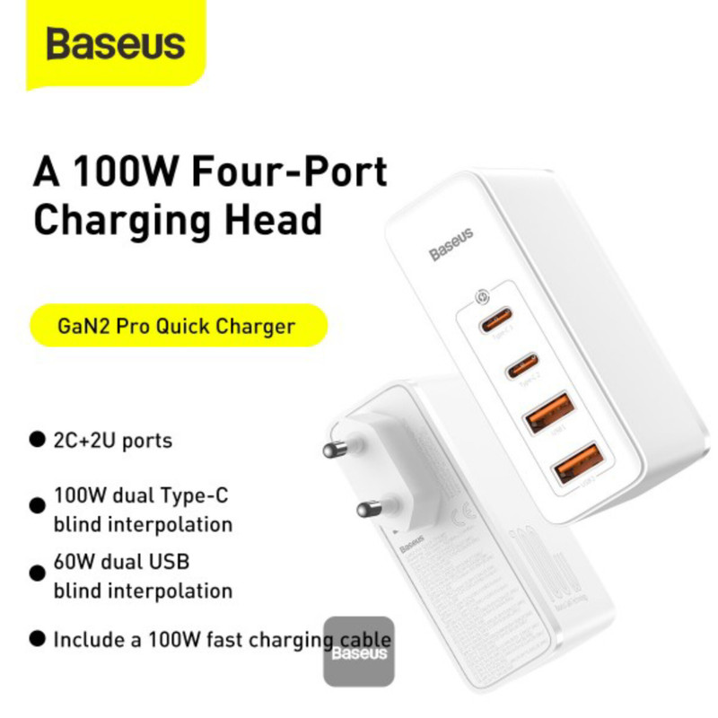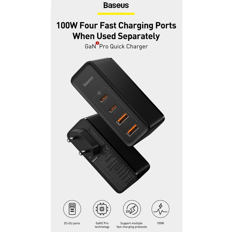 پورت بیشتر، توان بالاتر و شارژ سریعتر. اینها کلیدی ترین و رقابتیترین ویژگیهایی هستند که آداپتور فست شارژ بیسوس Baseus GaN2 Pro Quick Charger 2C+2U CCGAN2P-L01 از آنها برخوردار شده است. این شارژر برای اینکه بتواند هر 4 درگاهش را فست و پر سرعت کند از توان 100 وات بهره میبرد و در عین حال قادر به شارژ سریع چند دستگاه به طور همزمان هم میباشد.