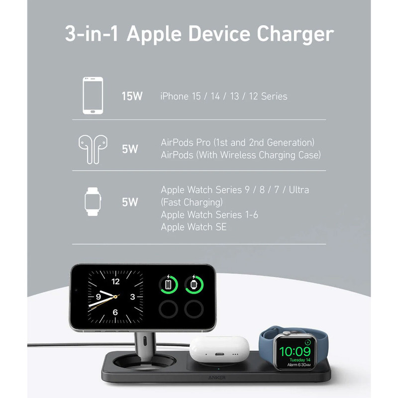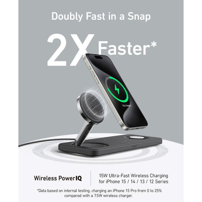 شارژر رومیزی انکر مدل MagGo Wireless Charging به همراه شارژر دیواری 40 وات انکر و کابل USB-C به طول 1.5 متر