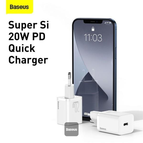 شارژر دیواری باسئوس مدل TZCCSUP-20W به همراه کابل تبدیل لایتنینگ