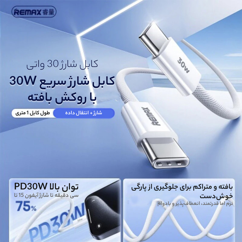 شارژر دیواری 25 وات فست شارژ بسیار قدرتمند ریمکس مدل U137 به همراه کابل شارژر تایپ C به تایپ C به توان 30 وات . جدیدترین محصول کمپانی بزرگ ریمکس است اولین چیزی که نظر کاربران را به خود جلب میکند شارژر سریع و استاندارد 25W QC و PD و اندازه جمع و جور آن است، فضا را اشغال نمی کند و با وزن فوق العاده سبک هنگام حمل به راحتی در دست است. پوسته شارژر از پلاستیک با کیفیت PC+ABS ساخته شده است. این ماده توانایی مقاومت در برابر دمای بالا و ضربه میباشد . همچنین پین های تخت ساخته شده از آلیاژ آلومینیوم با کیفیت بالا برای انتقال بهتر برق و مقاوم در برابر زنگ زدگی و اکسیداسیون، افزایش دوام و طول عمر محصول میشود .و در نهایت شارژر 25 وات ریمکس می توان از آن برای شارژ تلفن همراه، لپ تاپ و تبلت استفاده کرد 2. به طور خودکار جریان شارژ را بدون آسیب رساندن به دستگاه تنظیم کنید 3. قابل استفاده برای آیفون، شیائومی سازگار با سامسونگ، با سرعت شارژ سریع می باشد. 4. ولتاژ جهانی ، قدرت بالایی دارد. 5. چند پروتکل شارژ سریع سازگار، پشتیبانی از دستگاه های مختلف را انجام می دهد.