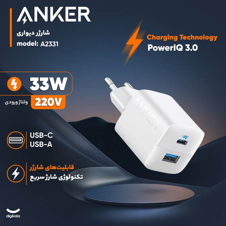 شارژر دیواری 33 وات انکر مدل A2331
