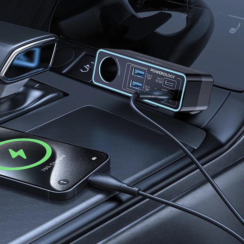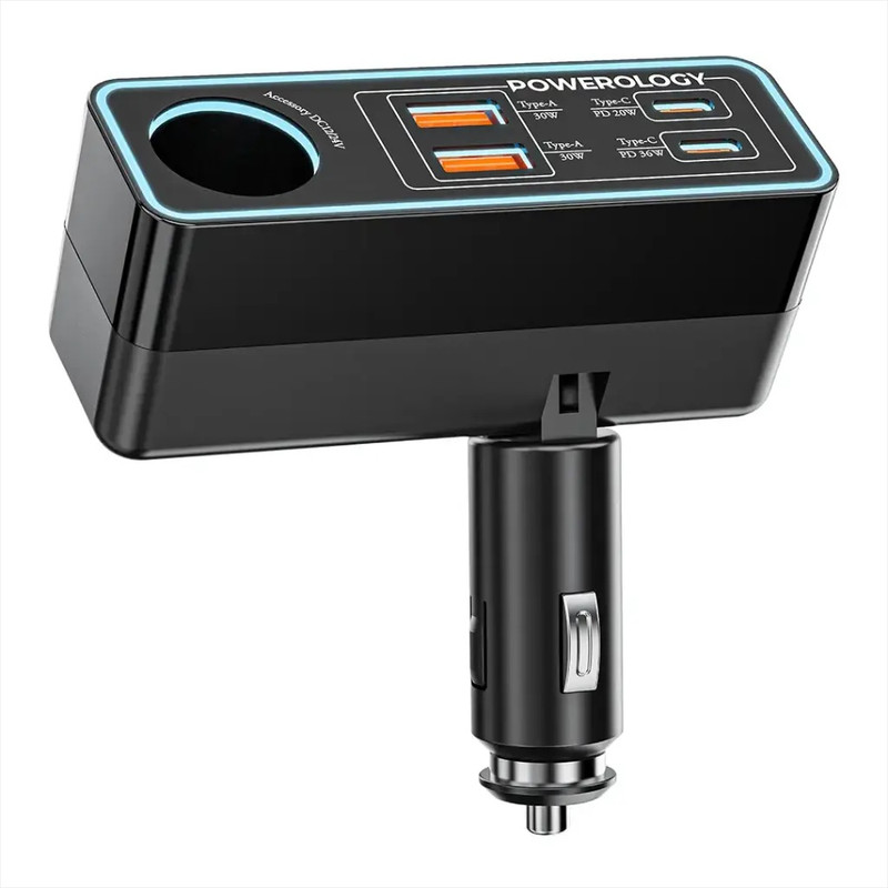 شارژر فندکی چند پورته Powerology Brio 125W نوع مناسبی از شارژر است که به شما امکان شارژ در حین حرکت را میدهد. این شارژر از ورودی برق ۱۲۵ وات پشتیبانی میکند و امکان شارژ همزمان چهار دستگاه را از طریق پورتهای USB-A و USB-C فراهم میکند. دستگاههای شما از طریق این شارژر، زمان شارژ سریعی را دریافت میکنند و در کنار آن، اقدامات ایمنی داخلی برای محافظت در برابر شارژ بیش از حد و گرمای بیش از حد نیز در نظر گرفته شده است. پورت فندکی از خروجی ۱۲۰ وات پشتیبانی میکند تا کاربردهای بیشتری را برای دستگاههای بزرگتر ارائه دهد. با قدرت شارژ سریع ۱۲۵ وات، میتواند برای هر دستگاه بزرگی مناسب باشد، در حالی که طراحی جمع و جور آن تضمین میکند که به راحتی در هر فضای داخلی ماشین جا میشود. این شارژر چند منظوره میتواند جایگزین بسیار خوبی باشد اگر میخواهید تلفنهای هوشمند، تبلتها یا هر دستگاه دیگری را سریع شارژ کنید.
