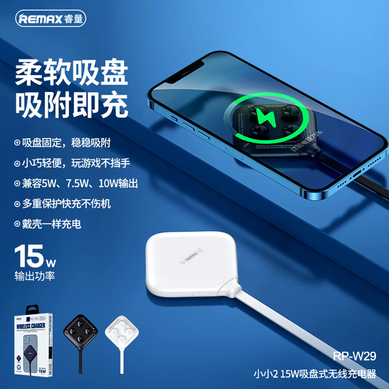 شارژر بی سیم برند ریمکس مدل RP-W29 با طراحی زیبا و قابلیت شارژ 15w می باشد، فست شارژ را پشتیبانی می کند و با توجه به ساکشن های روی شارژر در هنگام شارژ به گوشی موبایل متصل می شود.این محصول دارای کابل 30 سانتی متری USB ارائه می شود.