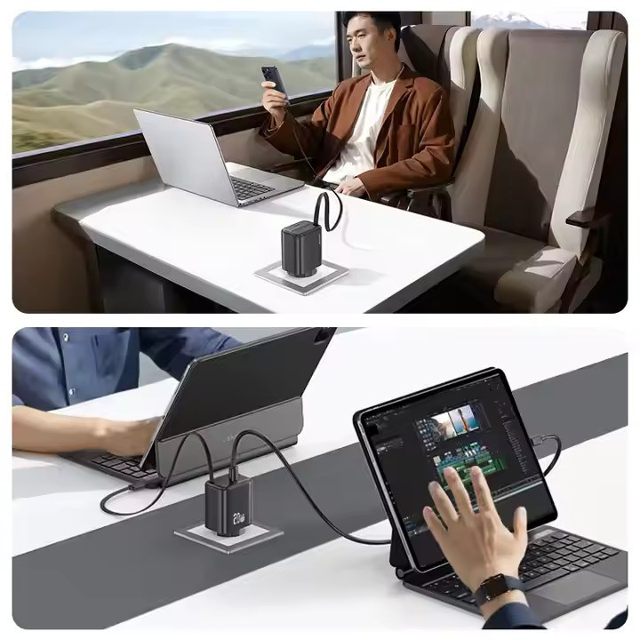 فناوری GaN: با استفاده از فناوری نیتریت گالیوم (GaN)، این شارژر کوچکتر، سبکتر و کارآمدتر از شارژرهای سنتی است.