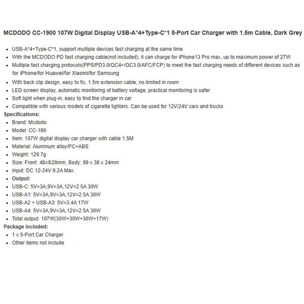 شارژر فندکی مک دودو مدل CC-1900