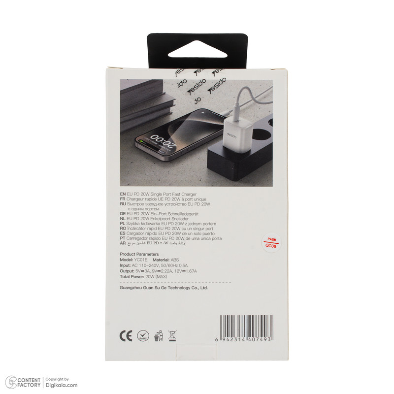 شارژر دیواری 20 وات یسیدو مدل YC01E