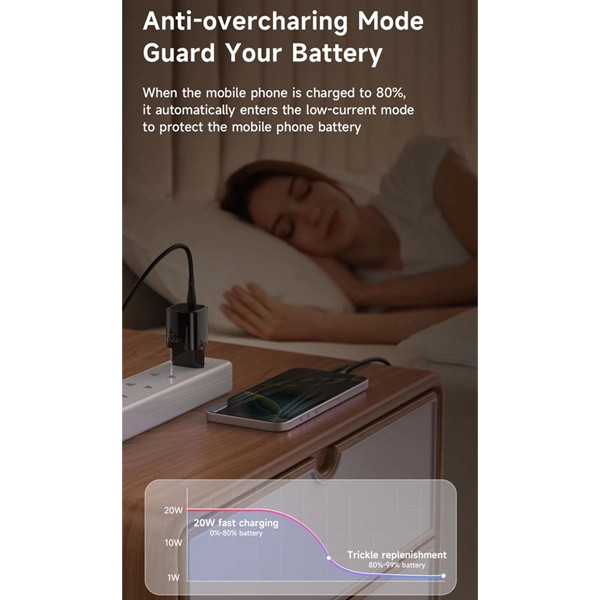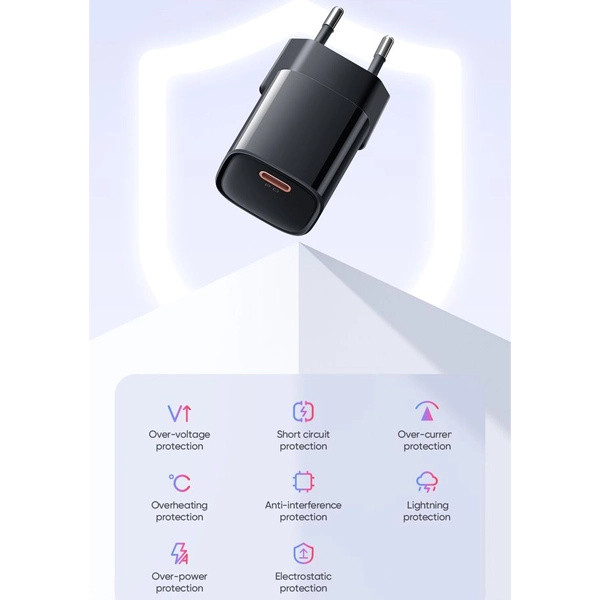 این شارژر از فناوری Power Delivery پشتیبانی میکند و با توان 20 وات میتواند گوشیهای سازگار مانند سری آیفون 13، 14، 15 و 16 را با سرعت بیشتری شارژ کند. آداپتور از نظر ایمنی نیز کامل است و در برابر شارژ بیشازحد، اتصال کوتاه، افزایش دما، اضافه جریان و اضافه ولتاژ محافظت میکند تا دستگاه شما بدون نگرانی شارژ شود.