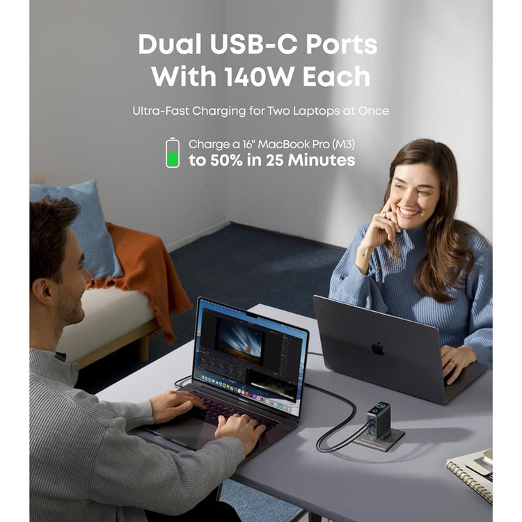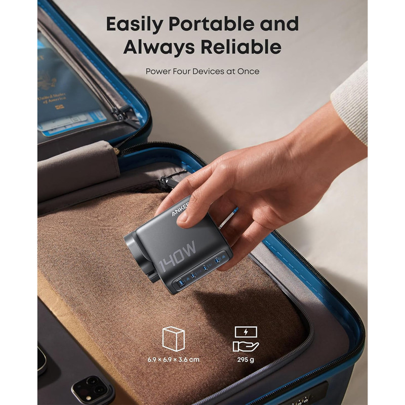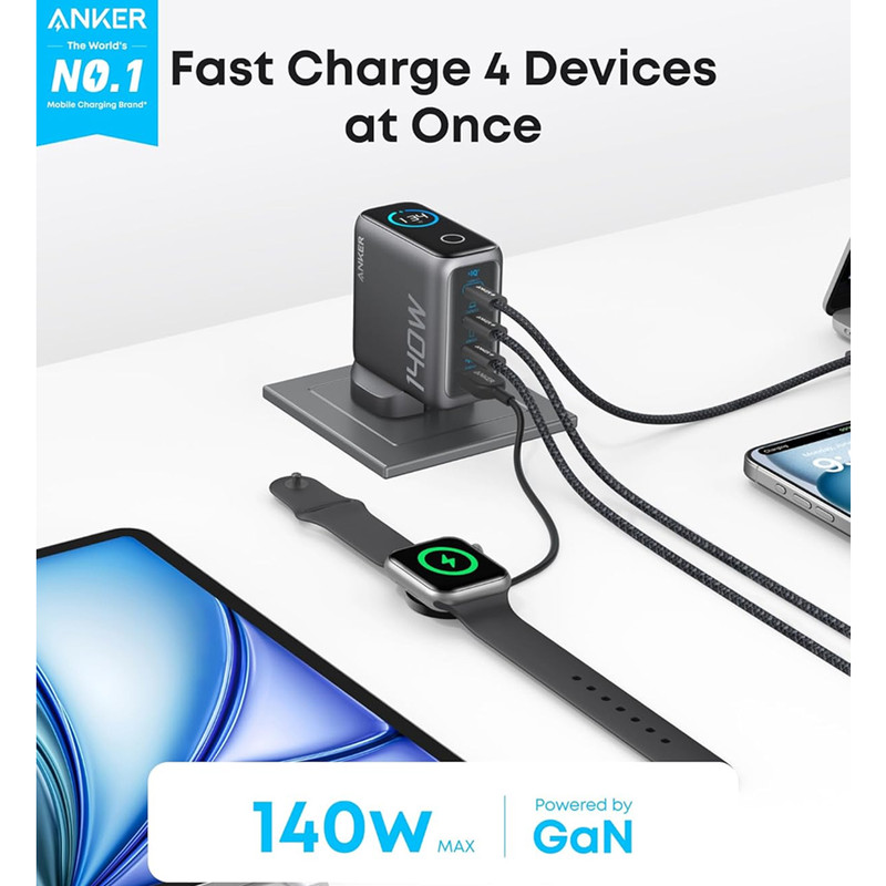 شارژر دیواری 140 وات 4 پورت انکر مدل B0DPKP7RD8 به همراه کابل USB-C به طول 1.5 متر