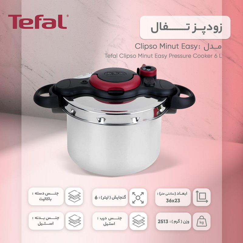 زودپز «تفال» (Tefal) مدل «Clipso Minut Easy» با گنجایش شش لیتر، محصولی بسیار کاربردی برای خانههای امروزی است. این زودپز حدود 30درصد سبکتر از باقی همردههای فعلی خود در بازار است و به شما اجازه میدهد فقط با یک دست، در آن را باز و بسته کنید. «تفال» امنیت این محصول خود را با پنج سیستم مختلف تأمین کرده است و همین موضوع باعث میشود حتی افراد تازهکار هم بتوانند با آرامشخاطر آشپزی کنند. داخل بستهبندی این زودپز، یک سبد قرار دارد که میشود از آن برای بخارپزکردن موادغذایی استفاده کرد. البته در صورت تمایل میتوانید سبزیجات معطر خوراک را داخل این سبد بگذارید و طی روند پخت، از عطر آنها در غذا بهرهمند شوید؛ بدون آنکه سبزی داخل خود خوراک پخته شده باشد. از دیگر ویژگیهای این زودپز میشود به کف سهلایهی آن اشاره کرد که به پخش یکنواخت گرما در سرتاسر ظرف کمک میکند.