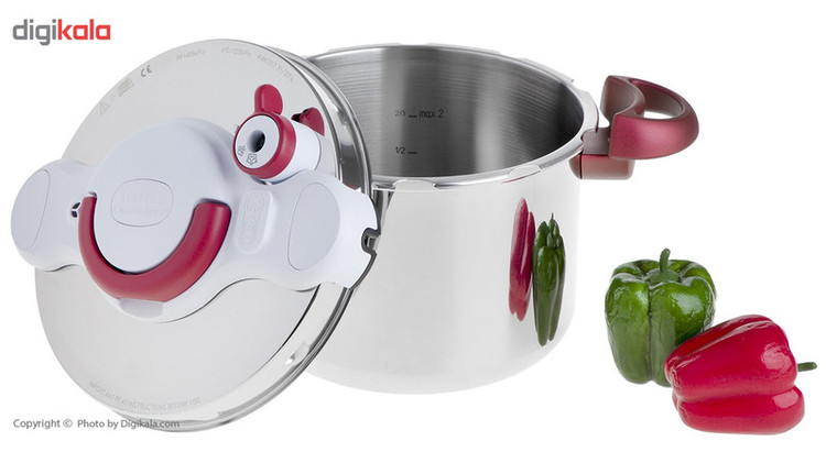 زودپز «Tefal» (تفال) مدل «Clipso Minut Perfect» با بدنهی استیل ضخیم ساخته شده و بسیار مقاوم و محکم است. این زودپز با داشتن پنج سیستم امنیتی، شما را از نگرانی خارجنشدن بخار و منفجر شدن زودپز راحت میکند. این محصول با گنجایش ششلیتری برای پخت سریع غذاها مناسب است. این زودپز قابلیت بخارپزکردن موادغذایی را دارد. با سبد استیلی که همراه این زودپز است، میتوانید خیلی سریع موادغذایی سالم و سرشار از ویتامین را بخارپز کنید. یک تایمر بالای درپوش زودپز است که برای تنظیم زمان پخت موادغذایی استفاده میشود. همچنین این محصول پوششی ضخیم و ضدزنگ دارد که غذاهای شما را دوبرابر سریعتر از حالت معمول آماده میسازد. این مدل از زودپز تفال از طراحی آسانبازشو برخوردار است که توسط یک دست بهراحتی و بدون صرف ذرهای انرژی و بدون نیاز به کمک و تنها با بالابردن دسته میتوان آن را باز و بسته کرد. طراحی جدید و خاص این زودپز در کنار قابلیتهای زیاد آن موجب عمر طولانیاش میشود.