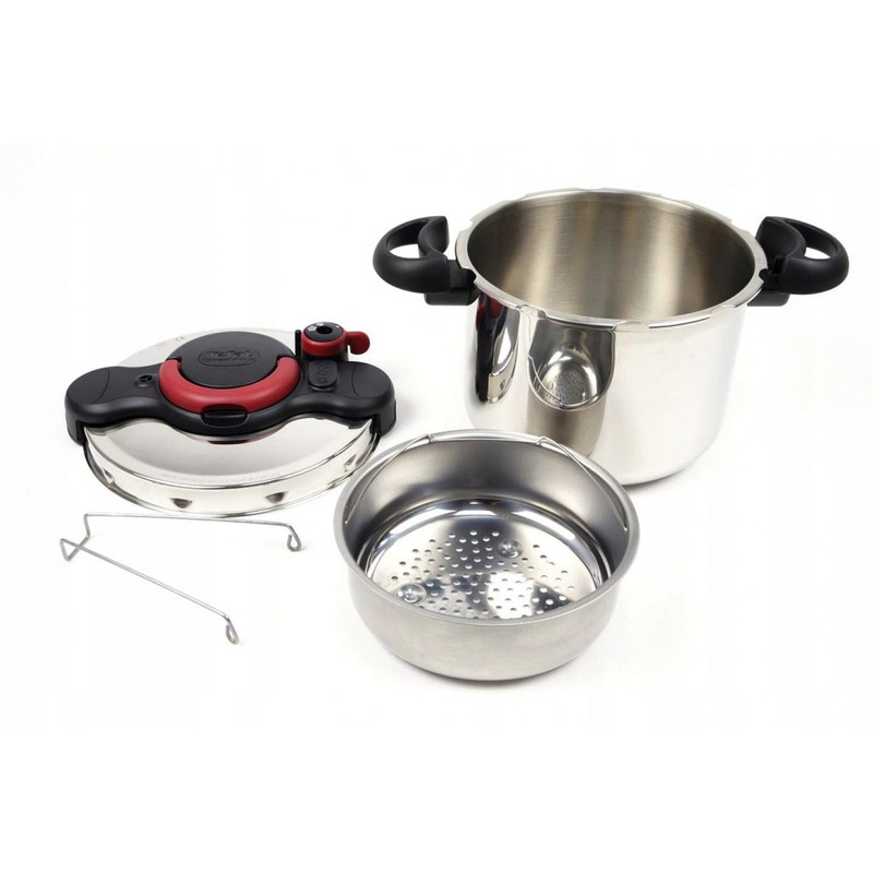 زودپز 7.5 لیتری «تفال» مدل «Clipso Minut Easy» با پوششی ضخیم و ضد زنگ غذاهای شما را 2 برابر سریعتر از حالت معمول آماده میسازد. این زودپز با 5 سیستم امنیتی که دارد شما را از نگرانی خارج نشدن بخار و منفجر شدن زودپز راحت میکند. درپوش این زودپز به گونهای طراحی شده است که شما تنها با یک دست به سادگی در زودپز را باز و بسته میکنید. زودپز تفال دارای یک سبد بخارپز تمام استیل بوده و به شما این امکان را میدهد که با قرار دادن سبد درون زودپز خیلی سریع غذایی سالم و سرشار از ویتامین را بخارپز کنید. که این ویژگی برای افرادی که رژیم دارند و به سلامت موادغذایی خود اهمیت میدهند بسیار مناسب است. این زودپز قابلیت استفاده روی انواع اجاقهای گازی، برقی، سرامیکی و هالوژنی را دارد. بدنه این زودپز تمام استیل بوده که آشپزی با آن را لذتبخش مینماید و علاوه بر مقاومت بالا موجب تمیز شدن آسان آن نیز میشود.