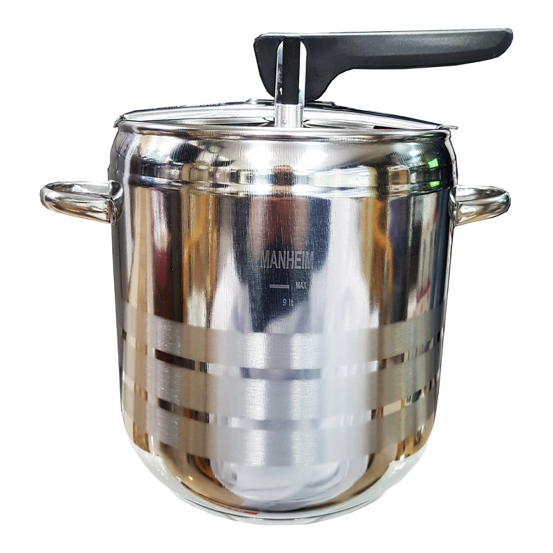 زودپز مانهیم 9 لیتری یکی از محصولات شرکت قدیمی گورگل متال است که در استان کاهرامان ماراش ترکیه واقع شده و عمده محصولات خود را به اروپا صادر میکند . زودپز از استیل 18/0ساخته شده کاملا زد زنگ میباشد. دارای لاستیک مخفی بوده که این امر باعث عمر طولانی لاستیک میباشد و لازم نیست زود به زود لاستیک تعویض شود . کف زودپز از چدن سه لایه ساخته شده که این امر باعث میشود حرارت به طور یکنواخت به تمام قسمتهای کف زودپز برسد و باعث پخت یکنواخت و سریع بشود.از دیگر ویژگیهای این زودپز می توان به سه سوپاپ اطمینانی اشاره کرد که روی زودپز تعبیه شده وباعث بالا رفتن ایمنی زودپز شده . لازم به ذکر است که این زودپز را می توان روی انواع اجاق گازی وبرقی و هالوژنی گذاشت و قابلیت شستشو در ماشین ظرشویی رادارد و همچنین قابلیت خنک کردن زیر آب سرد را دارا میباشد.