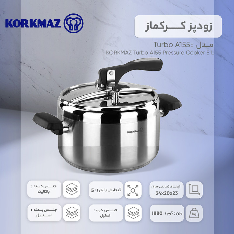 زودپز و آرام پز کرکماز محصول پرفروش برند کرماز ترکیه میباشد که از استیل ضد زنگ با استاندارد جهانی 18/10 تولید شده که در این محصول دو دستگیره از جنس باکالیت نسوز و خوش دست استفاده شده که حمل زودپز را بسیار آسان میکند این محصول بر روی انواع اجاقها گازی و از جمله برقی و غیره قابل استفاده میباشد این محصول با استفاده از سیستم SOLAR BASE تولید گردیده که باعث صرفه جویی در مصرف انرژی و زمان میشود که گرما را بصورت مساوی به داخل زودپز و مواد درحال پخت انتقال میدهد.این محصول داری کف چند لایه میباشد.
