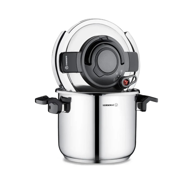 سایر توضیحات : دارای ظرفیت ۷ لیتر - ۲۲ سانتیمتر جنس : فولاد ضد زنگ Cr-Ni 18/10 پایه کپسول آلومینیومی با هدایت حرارتی همگن سازگار با القای الکتریکی عملکرد پخت تحت فشار ۲ مرحلهای
