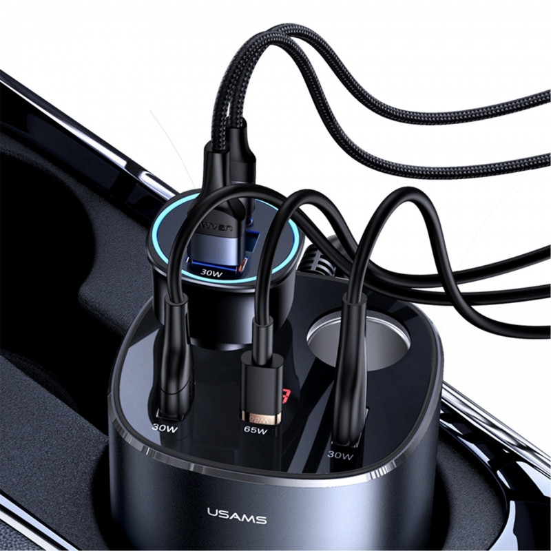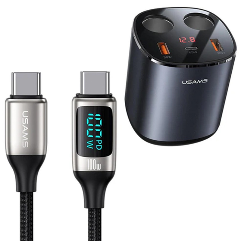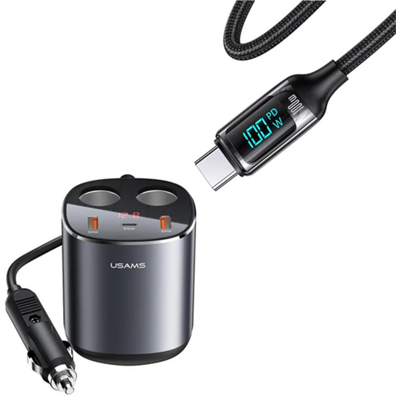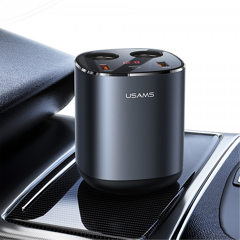 شارژر فندکی CC151 245w برند یوسمز دارای 2 سوکت فندک، 2 پورت USB و 1 پورت شارژ Type-C PD میباشد که یک محصوله عالی برای داخل ماشین است یکی از قابلیت های ویژه این محصول سرعت شارژ سریع میباشد که پورت Type-C از شارژ سریع PD 65W پشتیبانی می کند، که می تواند لپ تاپ ها را نیز درماشین شارژ کند این محصول به گونه ای طراحی شده است که میتوان آن را در جای لیوانی ماشین قرار داد طراحی فنجان، قرار دادن در جای لیوان ماشین، صرفه جویی در فضا و استفاده راحت و این محصول دارای صفحه نمایشگر دیجیتال میباشد که ولتاژ مصرفی در زمان واقعی را نشان میدهد