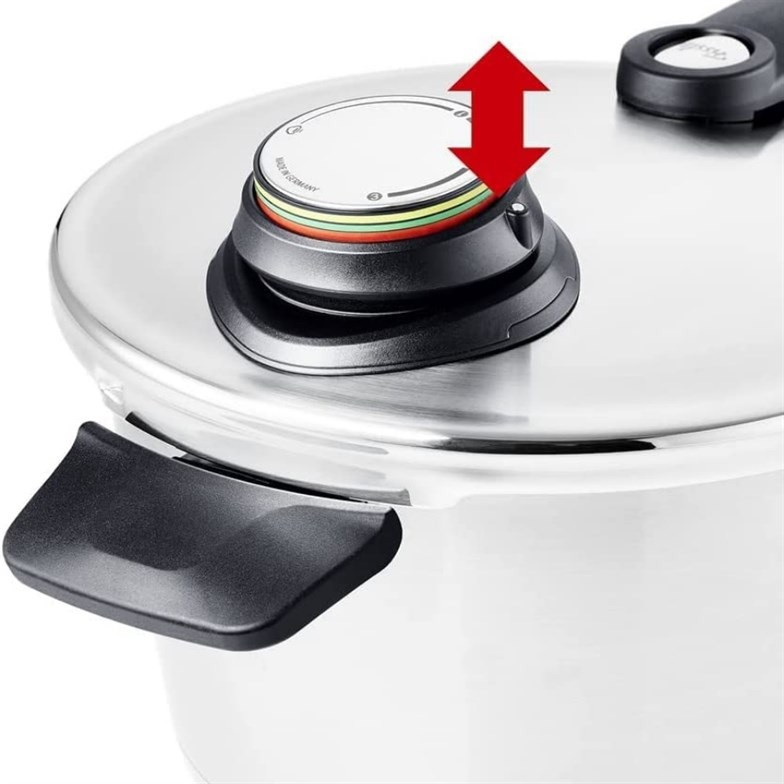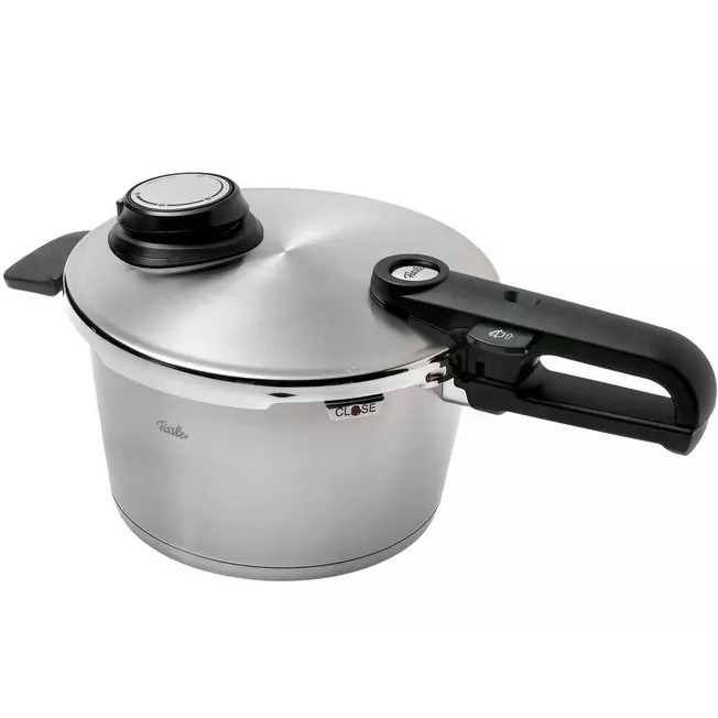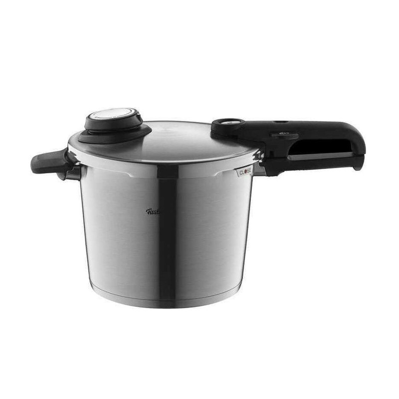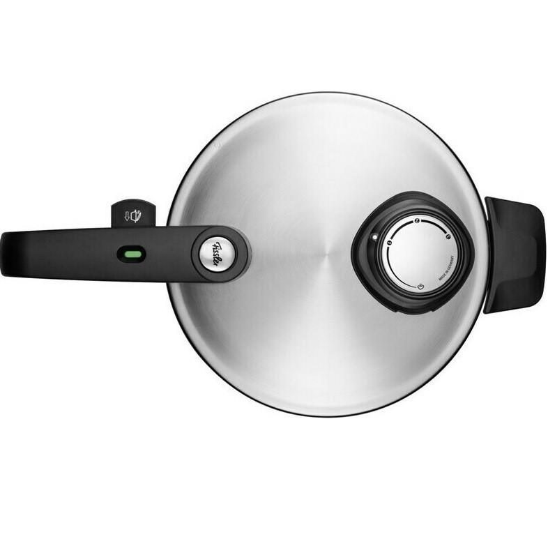 زودپز فیسلر ساخته شده از استیل 18/10، گنجایش 8 لیتر ، قابلیت استفاده با کمترین میزان آب جهت پخت حجم کم مواد غذایی، کف چدنی، کفه دارای سیستم پخش یکنواخت حرارت، دارای چهار سوپاپ ایمنی، سوپاپ نمایشگر حجم بخار داخلی،سوپاپ با قابلیت تنظیم حجم بخار داخلی در سه درجه پخت بهمراه حالت خروجی بخار، دسته و سوپاپ بطور کامل جداشو قابل و شستشو، تنها زودپز موجود در بازار که قابلیت تحمل بخار تا حجم 150 کیلو پاسکال را داراست، دارای سبد و پایه بخارپز جهت پخت بخارپزی سریع مواد غذایی، واشر و سوپاپ از جنس سیلیکونی با طول عمر بالا، ساخت کشور آلمان