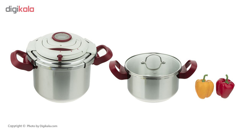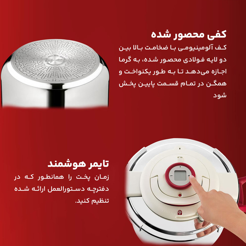 سایر توضیحات : زودپز دو قلو 6 و 4/5 لیتری تفال مدل Clipso Precision