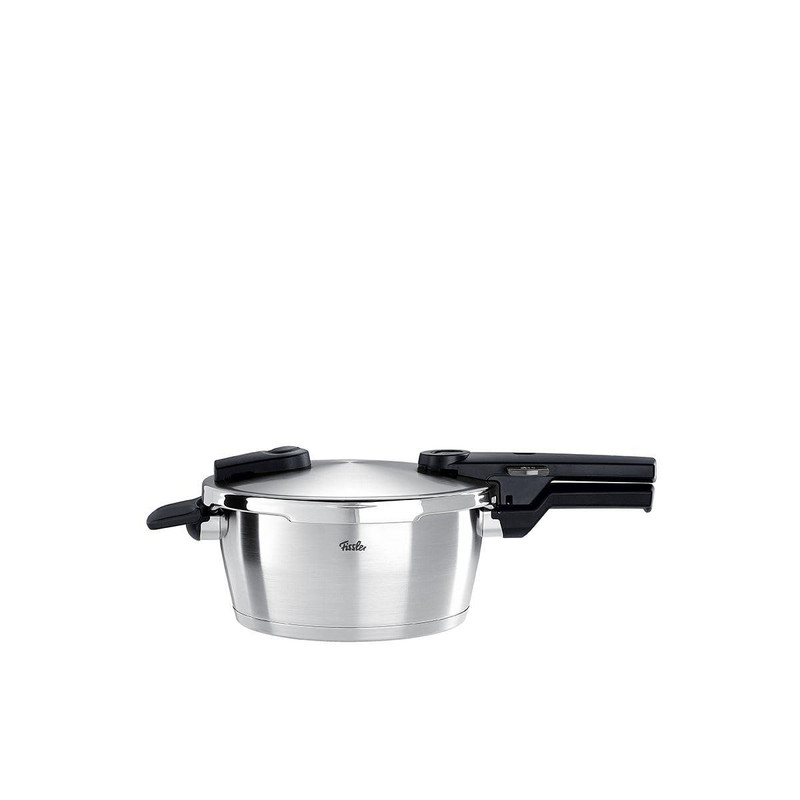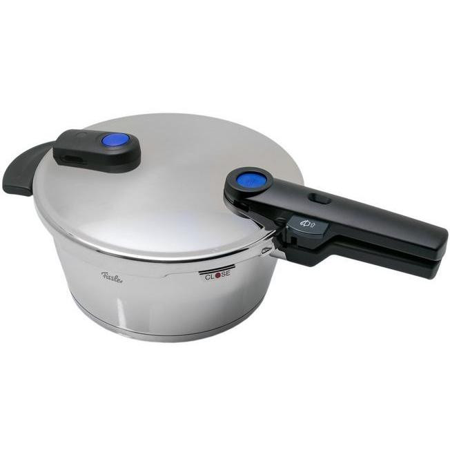 فیسلر به عنوان اولین تولیدکننده زودپز، 170 سال پیش (1845) توسط کارل فیلیپ فیسلر در آلمان پایه گذاری شد. «زودپز فیسلر مدل Vitaquick – گنجایش 3.5 لیتر» یکی از مدلهایی است که طراحی زیبایی دارد .زودپز فیسلر جزو یکی از امنترین زودپزهای تولیدشده در سراسر جهان است. حجم فشار تولیدشده در این زودپز 150 کیلو پاسکال بوده که در مقایسه با زودپزهای معتبر دیگر بیشتر است. از این رو سرعت پخت در زودپز فیسلر بالاتر از سرعت پخت در زودپزهای دیگر است. پس میتوان نتیجه گرفت که زمان کمتری از شما گرفته خواهد شد و هرچه قدر سرعت پخت بالاتر باشد ویتامینهای مواد غذایی بیشتر حفظ خواهد شد. این زودپز با تمامی انواع گازها، مانند گازهای الکتریکی یا گازی سازگاری دارد. این دستگاه بهطور معمول بدون فشار نیز کار میکند و میتوانید در مواقع دلخواه در آن را به منظور همزدن یا اضافه کردن موادغذایی بردارید و به همه روند پختوپز احاطه داشته باشید. این زودپز از استیل 10/18 ساختهشده که بهترین و مرغوبترین کیفیتاستیل را دارد. داخل زودپز مندرج شده است تا شما بدوننیاز به لیوان یا کاسهمندرج، مقدار مواد یا آب موردنظر خود را به داخل ظرف اضافه کنید. دارای 2 انتخابگر برای سرعت پخت و پز است که به وسیله دکمه روی دستگاه قابل تغییر است. دسته آن به آسانی جدا شده و به آسانی قابل پاکسازی است. همچنین کف این زودپز فوق حرارتی است و توانایی تحمل دماهای بالا را دارد. در مجموع «زودپز فیسلر مدل Vitaquick – گنجایش 3.5 لیتر» با قیمت مناسب و کاربردهای ویژه آن، بسیار مقرون بهصرفه و اقتصادی برای مصارف خانگی است.