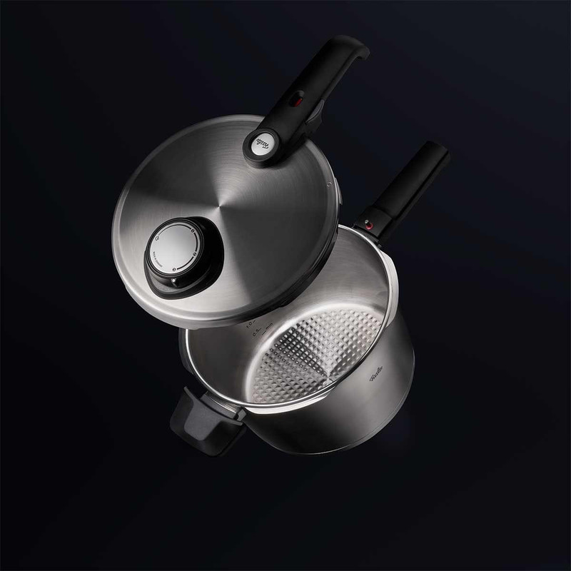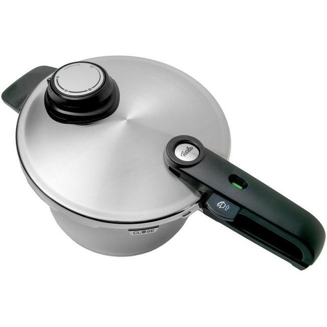 فیسلر به عنوان اولین تولیدکننده زودپز، 170 سال پیش (1845) توسط کارل فیلیپ فیسلر در آلمان پایه گذاری شد. «زودپز فیسلر مدل Vitavit Premium - گنجایش 4.5 لیتر» یکی از مدلهای سری ویتاویت است که طراحی زیبایی دارد. زودپز فیسلر جزو یکی از امنترین زودپزهای تولیدشده در سراسر جهان است. حجم فشار تولیدشده در این زودپز 150 کیلو پاسکال بوده که در مقایسه با زودپزهای معتبر دیگر بیشتر است. از این رو سرعت پخت در زودپز فیسلر بالاتر از سرعت پخت در زودپزهای دیگر است. هرچه قدر سرعت پخت بالاتر باشد ویتامینهای مواد غذایی بیشتر حفظ خواهد شد. این زودپز با تمامی انواع گازها، مانند گازهای الکتریکی یا گازی سازگاری دارد. این دستگاه بهطور معمول بدون فشار نیز کار میکند و میتوانید در مواقع دلخواه در آن را به منظور همزدن یا اضافه کردن موادغذایی بردارید و به همه روند پختوپز احاطه داشته باشید. بر روی درزودپز انتخابگری وجود دارد که میتوانید میزان فشار حبس شده داخل زودپز را کنترل نمایید. همچنین این انتخابگر به شما این امکان را میدهد تا بعد از اتمام پخت بخار حبسشده در زودپز را به راحتی تخلیه نمایید. این زودپز از بهترین نوع استیل ساخته شده است. داخل زودپز مندرج شده تا شما بدوننیاز به لیوان یا کاسهمندرج، مقدار مواد یا آب موردنظر خود را به داخل ظرف اضافه کنید. در این مدل از زودپز فیسلر مراحل پخت به صورت خطوط رنگی (زرد – سبز – قرمز) مشخص شده است که این امکان را به کاربر میدهد که در صورت لزوم میزان حرارت زیر زودپز را تغییر دهید. «زودپز فیسلر مدل Vitavit Premium - گنجایش 4.5 لیتر» دارای ظرفمخصوص بخارپز است که شما میتوانید با استفاده از آن، انواع سبزیجات و مواد خوراکی دیگر را هم بخارپز نمایید. در مجموع این دستگاه با قیمت مناسب و کاربرد های ویژه آن، برای هر آشپزخانه میتواند مثمر ثمر واقع شود.