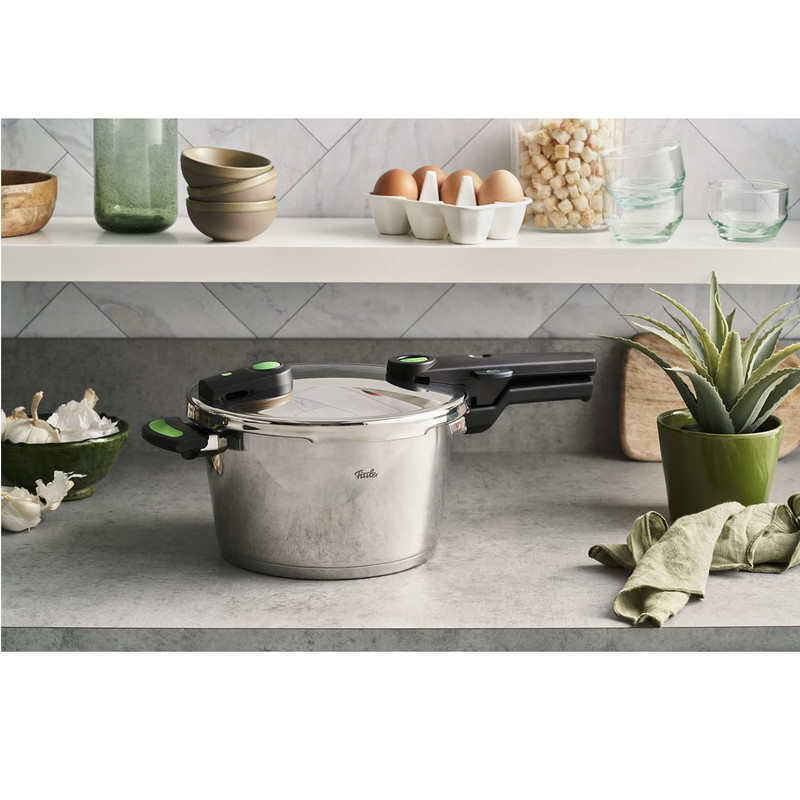 ساخته شده از استیل 18/10، گنجایش 4.5 لیتر،قابلیت استفاده با کمترین میزان آب جهت پخت حجم کم مواد غذایی، کف چدنی، کفه دارای سیستم پخش یکنواخت حرارت، دارای سه مرحله سوپاپ ایمنی، سوپاپ نمایشگر حجم بخار داخلی، تنها زودپز موجود در بازار که قابلیت تحمل بخار تا حجم 150 کیلو پاسکال را داراست، دارای سبد و پایه بخارپز جهت پخت بخارپزی سریع مواد غذایی، واشر و سوپاپ از جنس سیلیکونی با طول عمر بالا، ساخت کشور آلمان