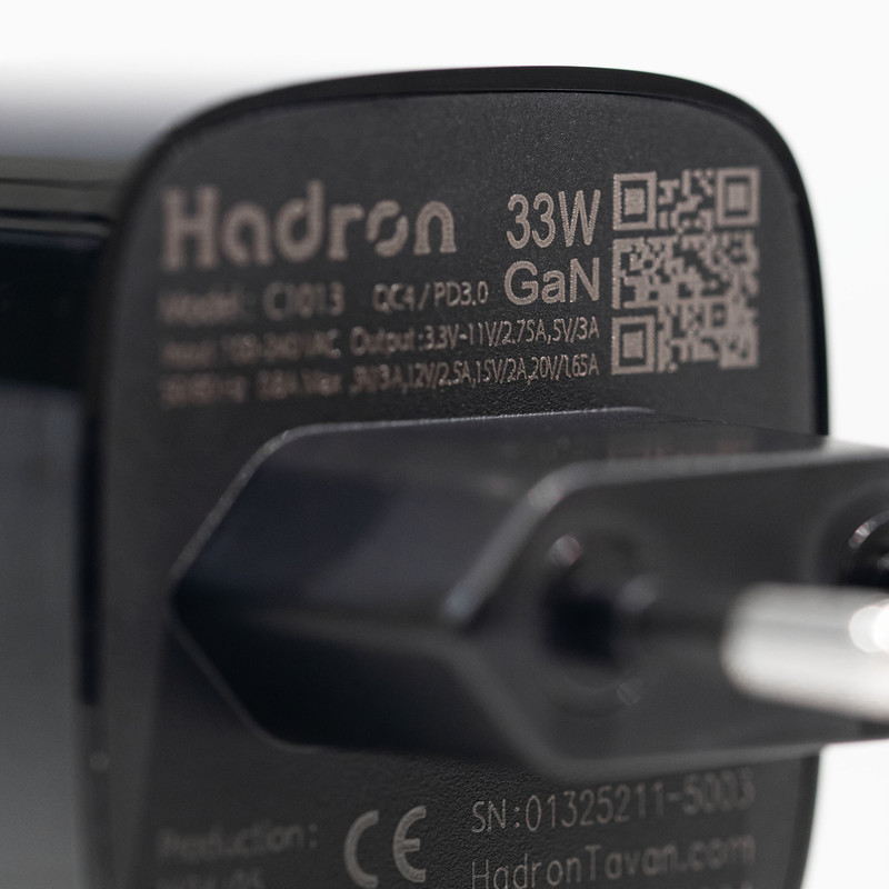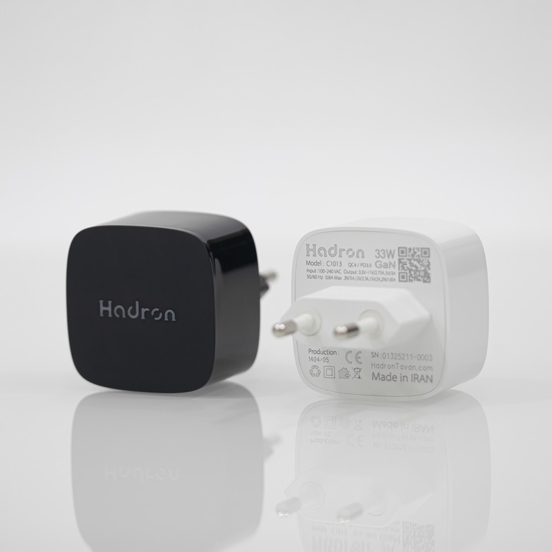 محصول C1013، شارژر دیواری 33W هادرون با یک خروجی از نوع Type-C میباشد. این شارژر مبتنی بر تکنولوژی GaN ساخته شده و از شارژ سریع تحت پروتکلهای PD ،QC و PPS پشتیبانی مینماید.