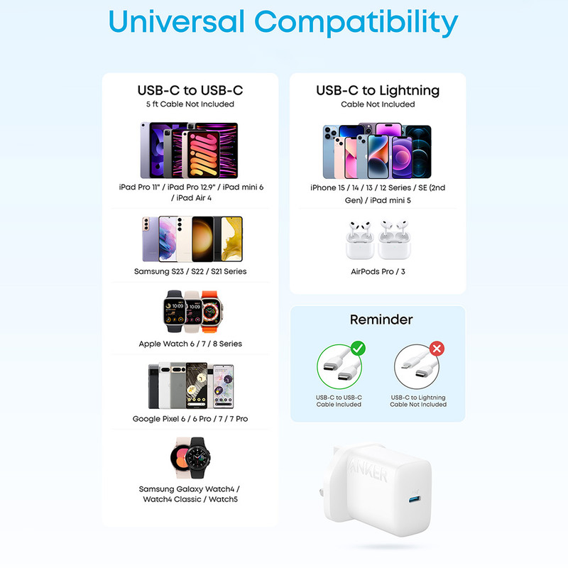 شارژر دیواری 20 وات انکر مدل B2347K21 به همراه کابل Type-C به Type-C به طول 1.5 متر