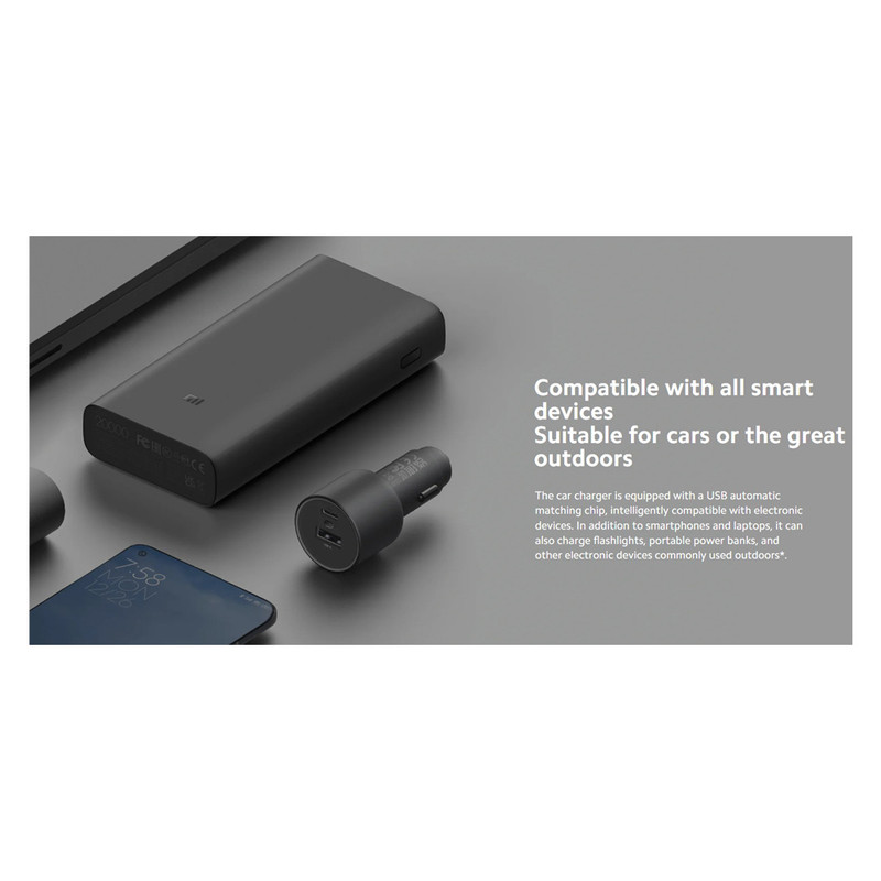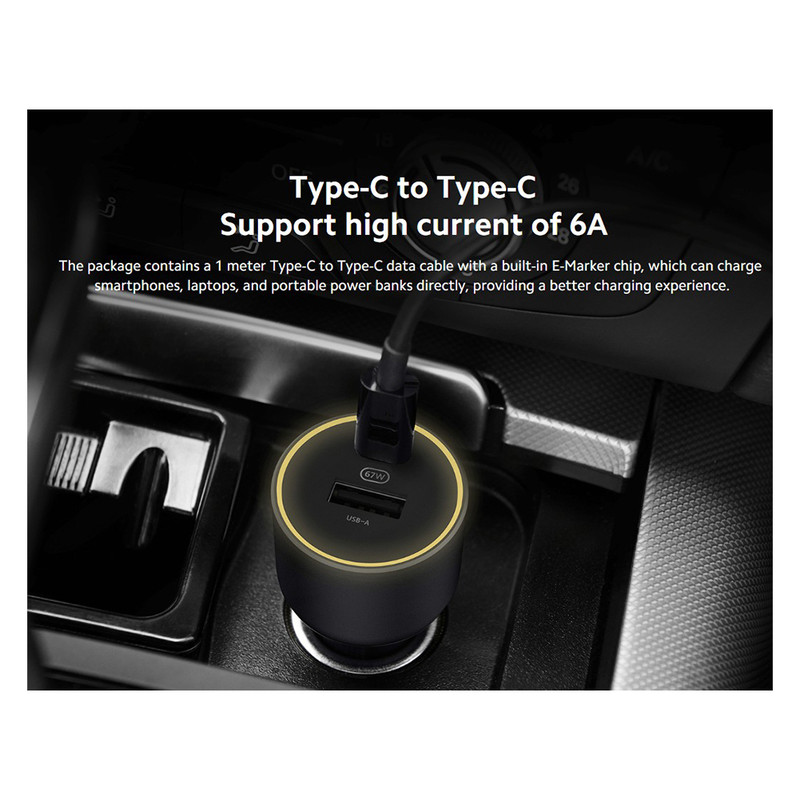 شارژر فندکی 67 وات دو پورت شیائومی مدل CC07ZM به همراه کابل شارژ USB-C به طول 1 متر