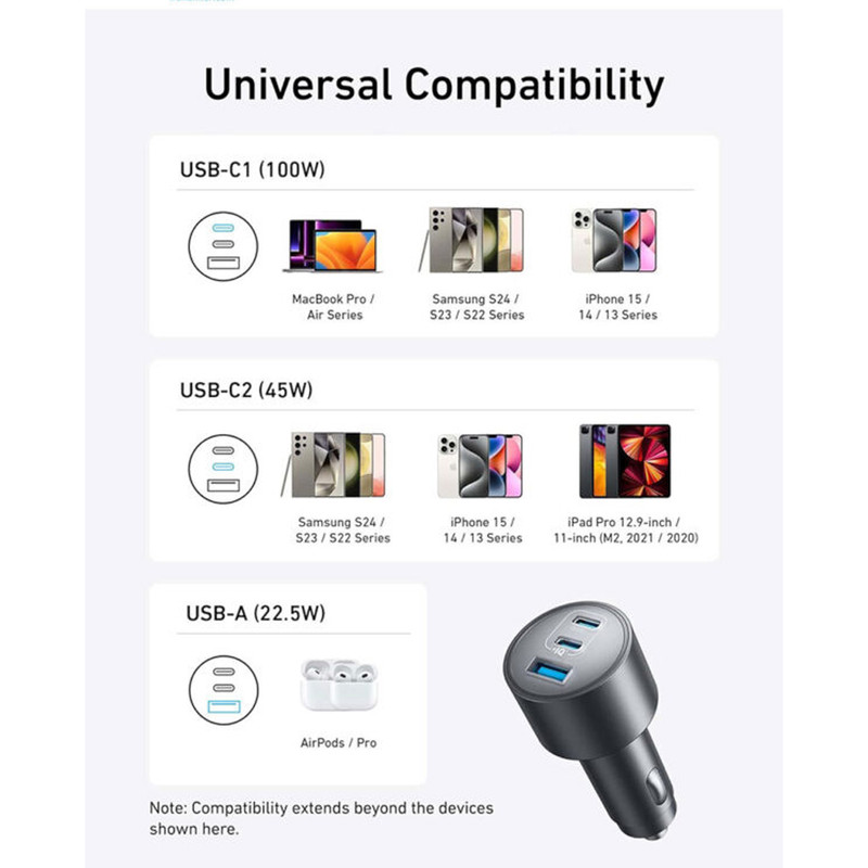 شارژر فندکی 100 وات 3 پورت انکر مدل B2737 به همراه کابل USB-C به USB-C