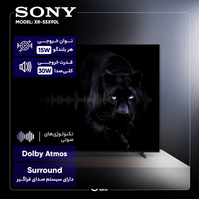 سیستم صوتی تلویزیون سونی مدل XR-55X90L با توان خروجی ۳۰ وات و استفاده از اسپیکرهای Acoustic Multi-Audio صدایی فراگیر و شفاف را تولید میکند. فناوریهای صوتی Dolby Atmos و DTS Digital Surround هم تجربهای سینمایی را در خانه شما شبیهسازی میکنند.