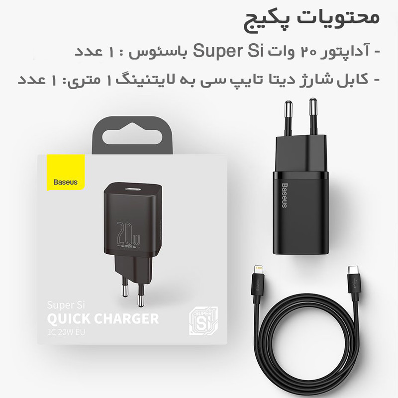 آداپتور شارژر بیسوس مدل Super Si 20W همراه با کابل لایتنینگ