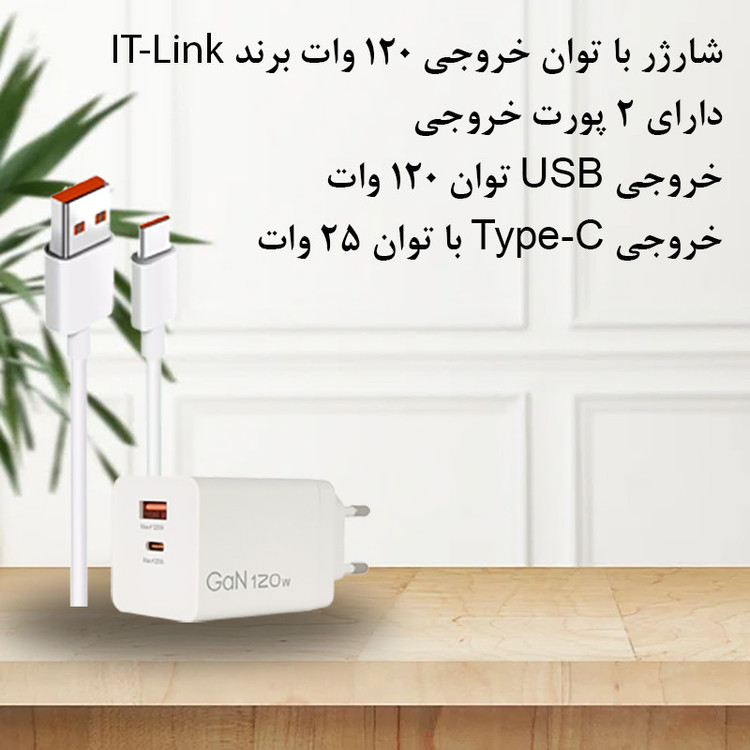 شارژر دیواری 120 وات 2 پورت آی تی لینک مدل MDZ-M15 به همراه کابل رابط USB-C
