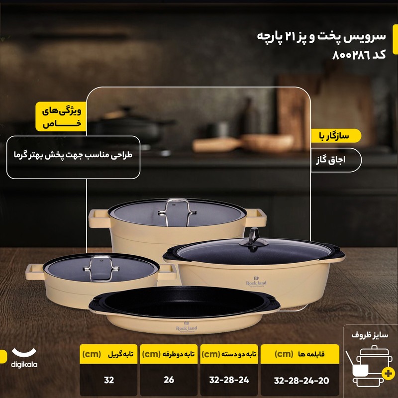 سرویس پخت و پز 21 پارچه راکلند مدل تمیس کد 800286