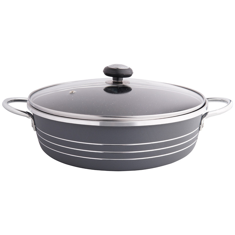 تابه سایز ۳۲ مدل گلدانی شامل یک عدد تابه سایز ۳۲ به همراه درب و دستگیره درب می باشد که جنس پوشش داخلی آن گرانیت سه لایه و جنس دسته های آن فلزی می باشد و از مرغوب ترین مواد اولیه تهیه شده است