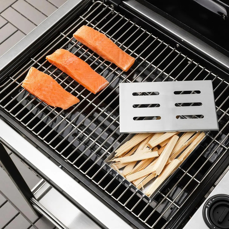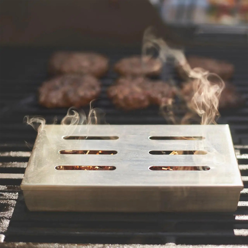 اگر به طعم خوش عطر دود در غذاهای گریلشده علاقه دارید، ولی نمیخواهید ذغال و خاکستر مستقیم روی غذایتان بریزد، ظرف دوددهی GRILLTIDER دقیقاً همان انتخابی است که لازم دارید. این محصول، یک محفظه کوچک و هوشمندانه از فولاد ضدزنگ است که بهراحتی روی گریلهای ذغالی و گازی نصب میشود و با انواع چیپس چوب دوددهی میکند. کافیست مقداری چیپس چوب (مثلاً بلوط یا گیلاس) داخلش بریزید و پس از حدود ۱۵ دقیقه دود خوشطعم آن، سایه سار گریل شما را پر کند؛ بدون اینکه ذغال یا خاکستر روی غذایتان بریزد. از آنجایی که تمامی قطعات آن از استنلس استیل ضدزنگ ساخته شدهاند، این جعبه بسیار مقاوم و بدون زنگزدگی است و بعد از خنکشدن، بهراحتی خاکسترش را خالی کرده و داخلش را میشویید برای استفادههای بعدی کاملاً آماده خواهد بود.