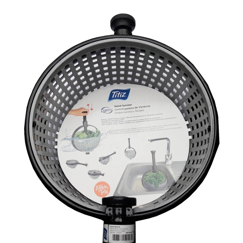 زندگی مدرن نیازمند گجت های کارامد می باشد که در عین سادگی نیازهای خاص ما را برطرف می کنند. برند ترکیه ای تیتیز از تولید کنندگان بنام و شناخته شده صنایع پلاستیک و لوازم آشپزخانه ای در این میان توانسته با استفاده از مواد اولیه درجه یک و بهداشتی و تحت استانداردهای سخت گیرانه اروپایی و بهره گیری از طراحی خلاقانه محصولاتی با این ویژگی به مصرف کنندگان ارائه کند. محصولات این برند در میان مصرف کنندگان ایرانی نیز شناخته شده و محبوب می باشد. سبزی خشک کن مدل EXPRESS کد 9148 در واقع یک سبد آبکش با دسته ای جادویی است که در چشم به هم زدنی آن را تبدیل به سبزی و سالاد خشک کن می کند. شما می توانید مواد مورد نظر را شسته و در این سبد آبکشی نمایید و سپس با قرار دادن دستگیره سبد در حالت عمودی و چند فشار پی در پی روی آن سبد را با سرعت به چرخش در آورده و عمل آبگیری و خشک کردن را انجام دهید. مزیت این سبد علاوه بر داشتن این عملکرد جمع شدن دسته آن در مواقع عدم نیاز و اشغال فضای کمتر می باشد. این سبد از مواد پلاستیکی دارای استاندارد مواد غذایی و فاقد مواد مضر ساخته شده و قابل شستشو در ماشین ظرفشویی می باشد.