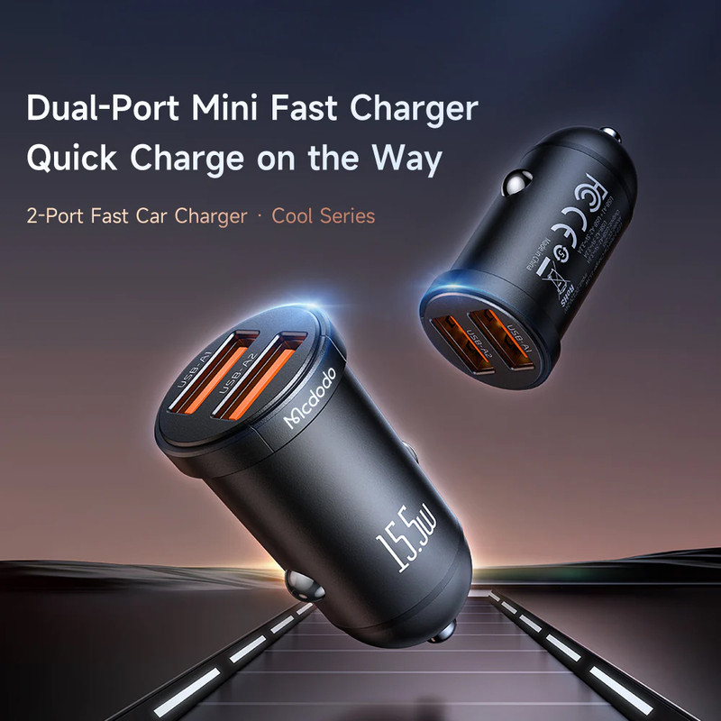 شارژر فندکی 15.5 وات مک دودو مدل CC-295 ساخته شده از آلیاژ آلومینیم+PC که دارای بدنه مات شکیل و مقاوم است. این شارژر فندکی مک دودو دارای دو خروجی USB با مجموع توان 15.5 وات است.پشتیبانی از APPLE 2.4, Samsung 2A را داراست.