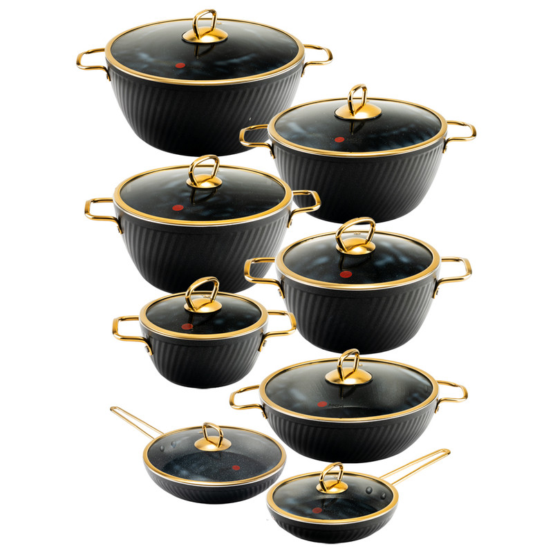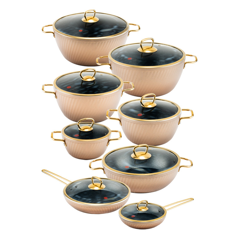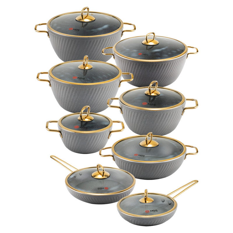 سرویس قابلمه 16 پارچه فورج طرح ماینز سری سوم یک سرویس ظروف پخت و پز عالی برای هر سلیقهای است. این ست شامل پنچ قابلمه در سایزهای 16/20/24/28/32، یک تابه دو دسته سایز 28 و دو تابه تک دسته سایز 28 و 20 است.
