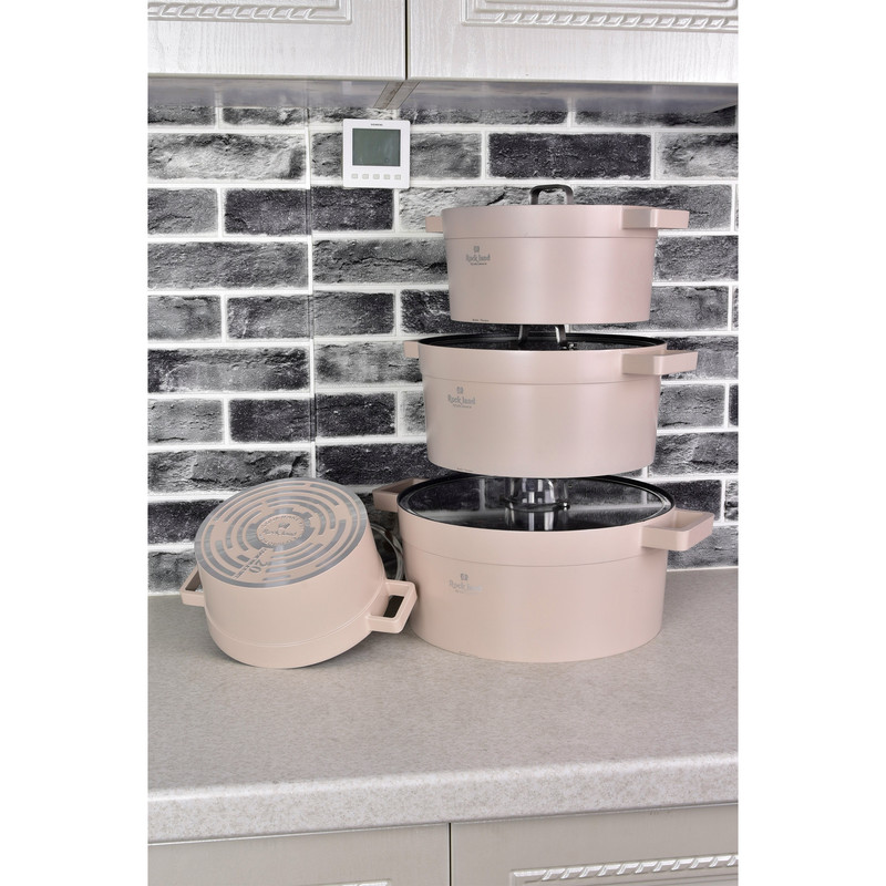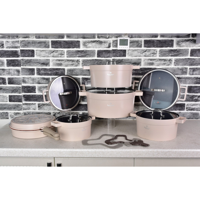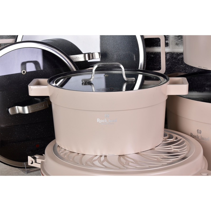سرویس قابلمه راکلندمقاوم در برابر حرارت می باشد پوشش داخلی قابلمه گرانیت فوق العاده با کیفیت می باشد سرویس راکلند شامل: قابلمه سایز 20، 24، 28، 32 با درب شیشه ای حاشیه فلزی تابه سایز 24 و 28 با درب شیشه ای حاشیه فلزی تابه رژیمی گرد زیر قابلمه ای