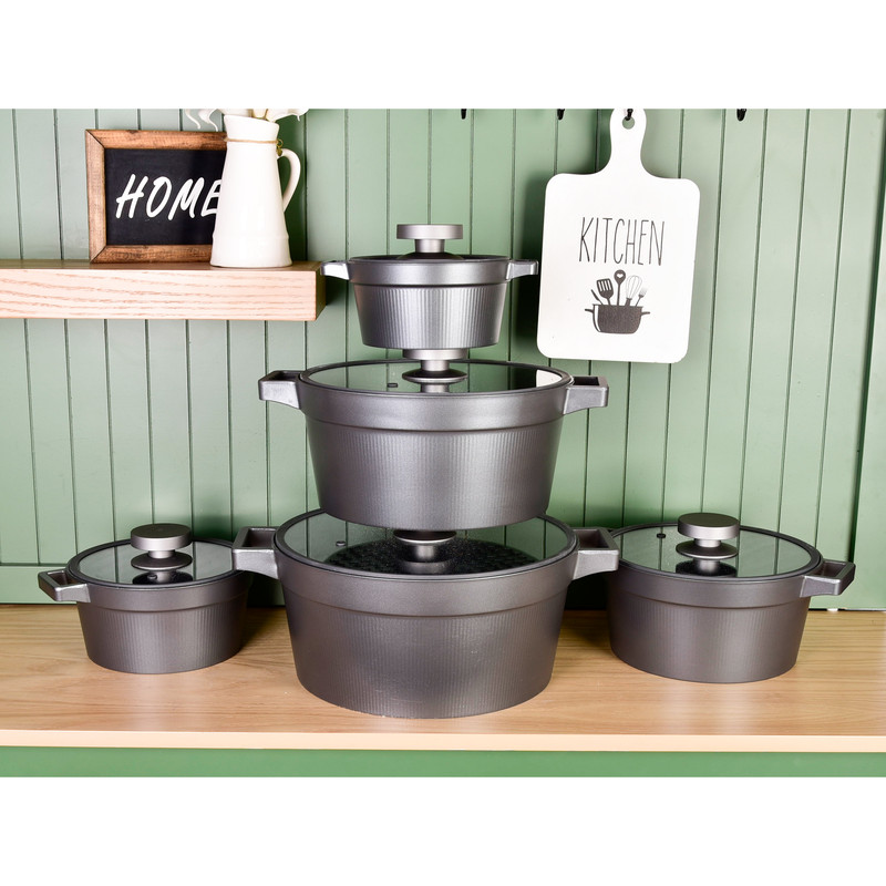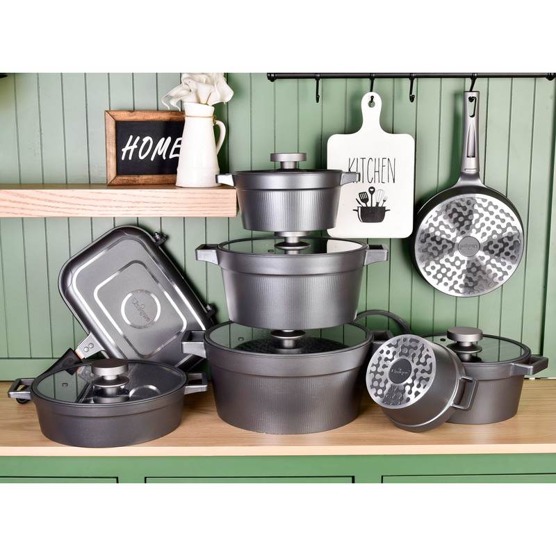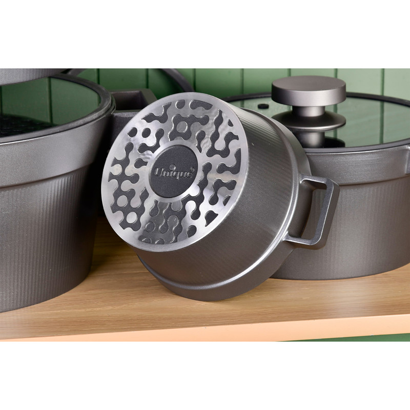 در سرویس پخت و پز 15 پارچه یونیک قابلمه و تابه وجود دارد که میتوان گفت با توجه به سایزهایی که دارند از کاربرد رایج در آشپزخانه برخوردار خواهند بود. سایزهای قابلمه معادل 16، 20 ، 24 ، 28 ، 32 و تابه تک دسته سایز ۲۴ ، تابه دودسته سایز 28 ، تابه رژیمی سایز 34 است که هر کدام طبق حجم مواد غذایی که دارند، برای پخت و پز مواد متنوعی به کار میروند.