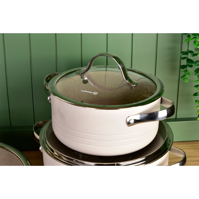 سرویس قابلمه گرانیتی کرکماز مدل Linea A2619 محصولی زیبا، با کیفیت و کاربردی 7 پارچه از این برند معروف کشور ترکیه می باشد. این سرویس قابلمه با رنگ بندی متنوع و زیبا می تواند زینت بخش آشپزخانه شده و آشپزی مفرح تری را به ارمغان بیاورد.