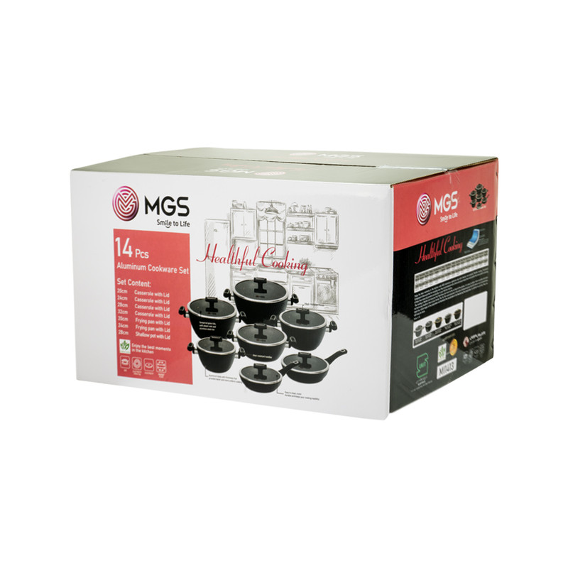 این سرویس قابلمه 14 پارچه طرح ماینز شامل چهار قابلمه و چهار درب پیرکس بعلاوه دو تابه تک دسته همراه درب است. جنس روکش این ست، گرانیت نچسب است. نحوه ساخت این سرویس قابلمه 14 پارچه فورج و دستههای آن به بدنه متصل شده است.