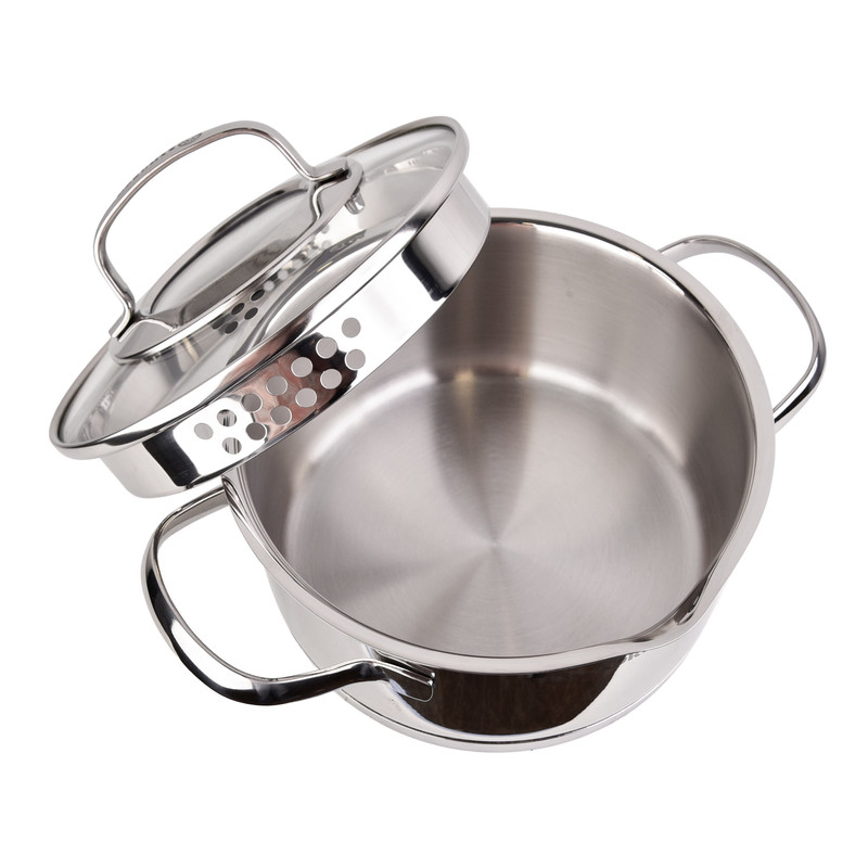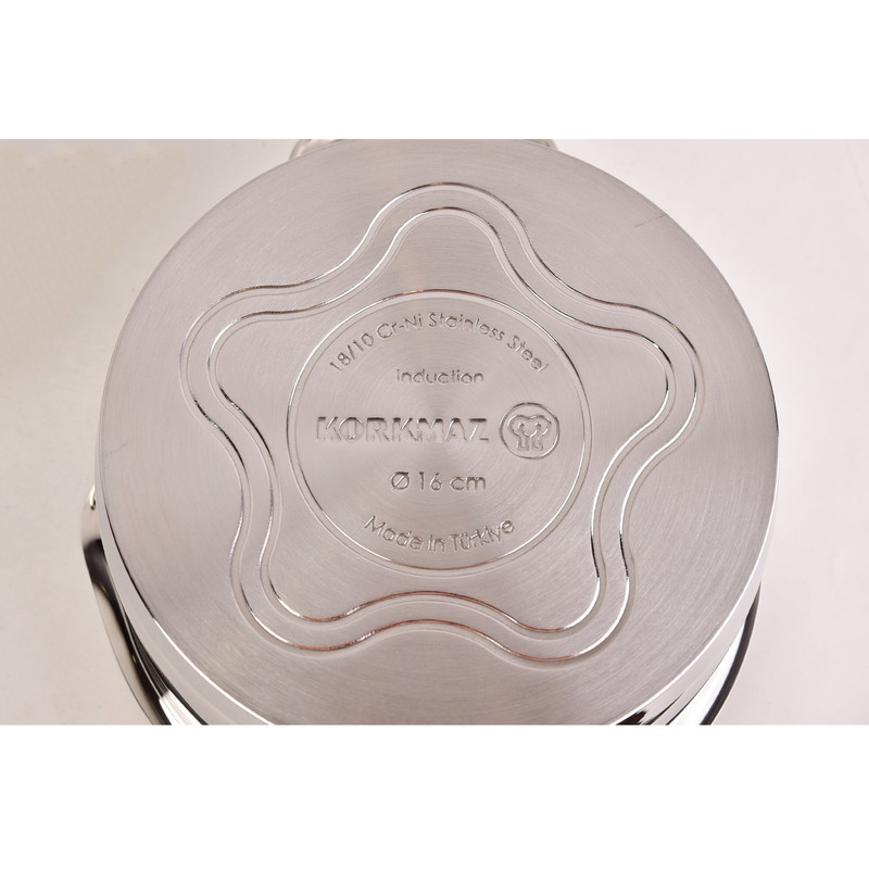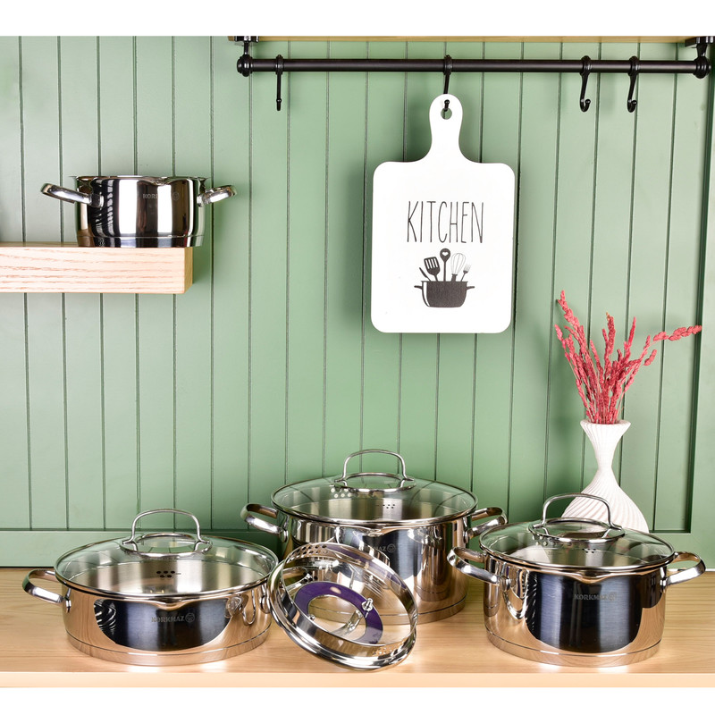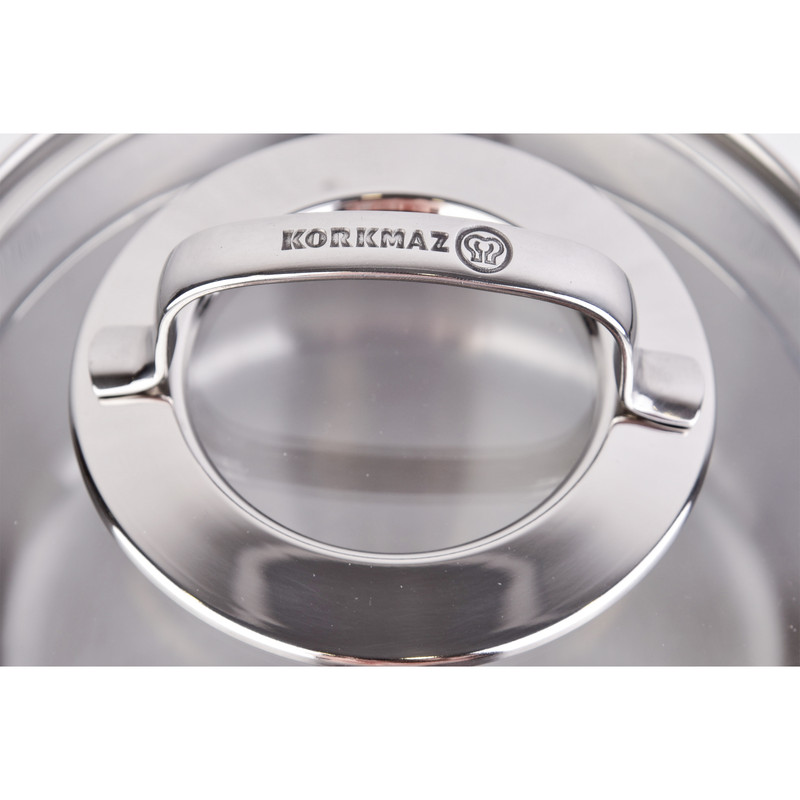 سرویس قابلمه کرکماز Steama A1999 یکی دیگر از سرویسهای پخت و پز برند کرکماز میباشد. بدنه این سرویس از استیل ضد زنگ 18/10 (Cr-Ni 18/10 stainless steel) ساخته شده است. این نوع استیل حاوی 18 درصد کروم و 10 نیکل میباشد. همچنین سطح قابلمهها برای درخشندگی بیشتر به صورت دقیق صیقل داده شده که زیبایی خاصی به قابلمهها داده است. سرویس قابلمه استیل کرکماز دارای 4 عدد قابلمه با ظرفیتهای 1.6، 3، 3 و 5.5 لیتر و به ترتیب با ابعاد 24×7 ،20×10 ،16×8 و 24×12 سانتیمتری میباشد. هر قابلمه دارای درب مخصوص به خود از جنس شیشه نشکن حرارت دیده است. دربهای سرویس قابلمه 8 پارچه کرکماز مجهز به صافی بوده و با تنظیم کردن مکان آن بر روی قابلمه میتوان آب داخل آن را خارج کرد. در داخل هر قابلمه نشانگر ظرفیت ایجاد شده است که در پیمایش مواد غذایی داخل آن به شما کمک خواهد کرد. دستگیره های سرویس قابلمه Steama A1999 از استیل ضد زنگ ساخته شدهاند که در برابر گرما مقاوم و نسوز میباشند.